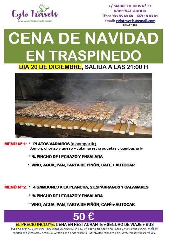 Cena de Navidad en Traspinedo con Eylo Travels – 20 de diciembre ¡Plazas Limitadas!