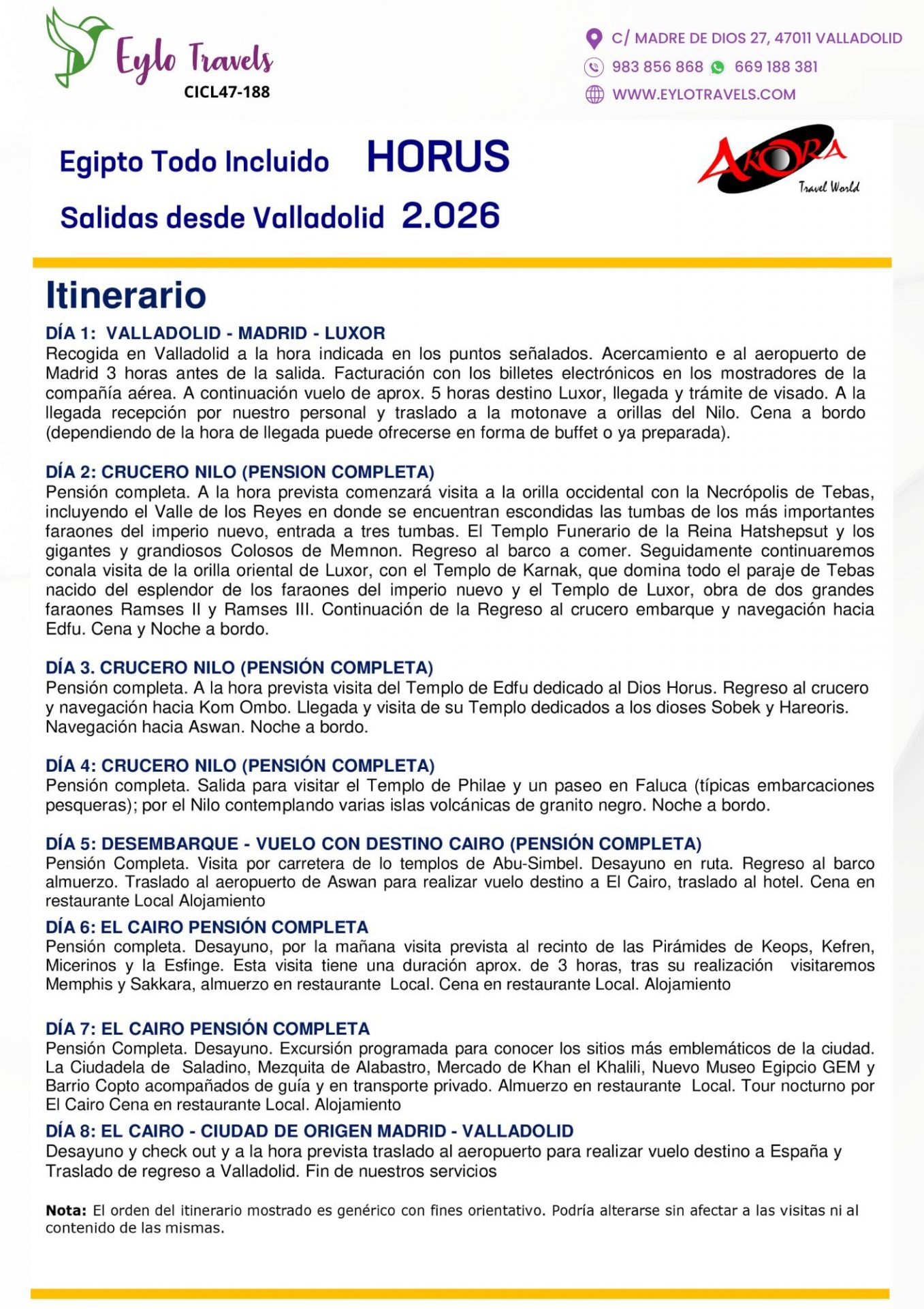 - Día 8: El Cairo – Madrid – Valladolid.