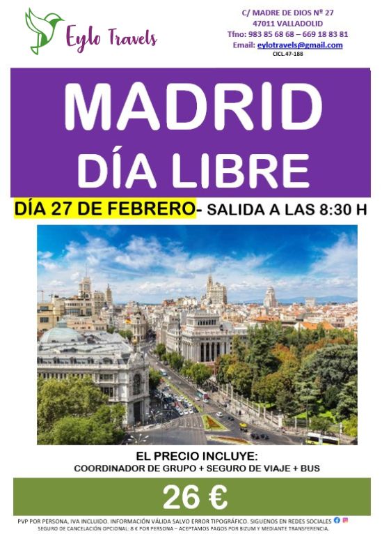Escapada a Madrid Día Libre el 27 de febrero.