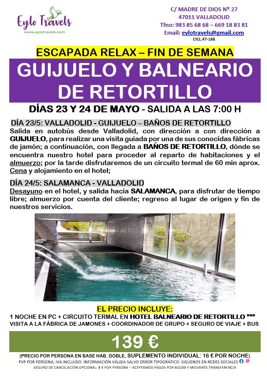 ESCAPADA RELAX a Guijuelo y Balneario de Retortillo 23 y 24 de mayo.