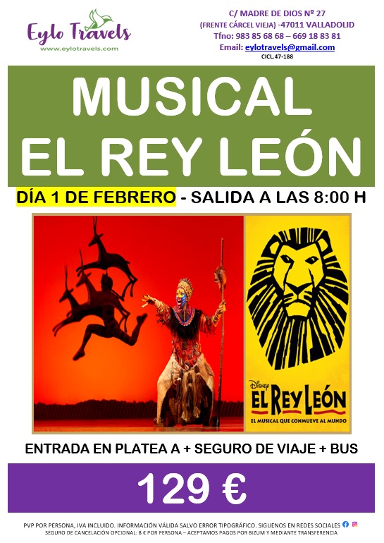 Viaje al Musical El Rey León en Madrid desde Valladolid el 01 de febrero de 2026