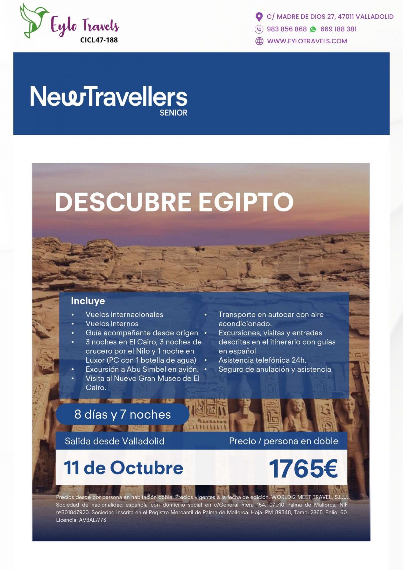 - Precio: 1765€ por persona en habitación doble.