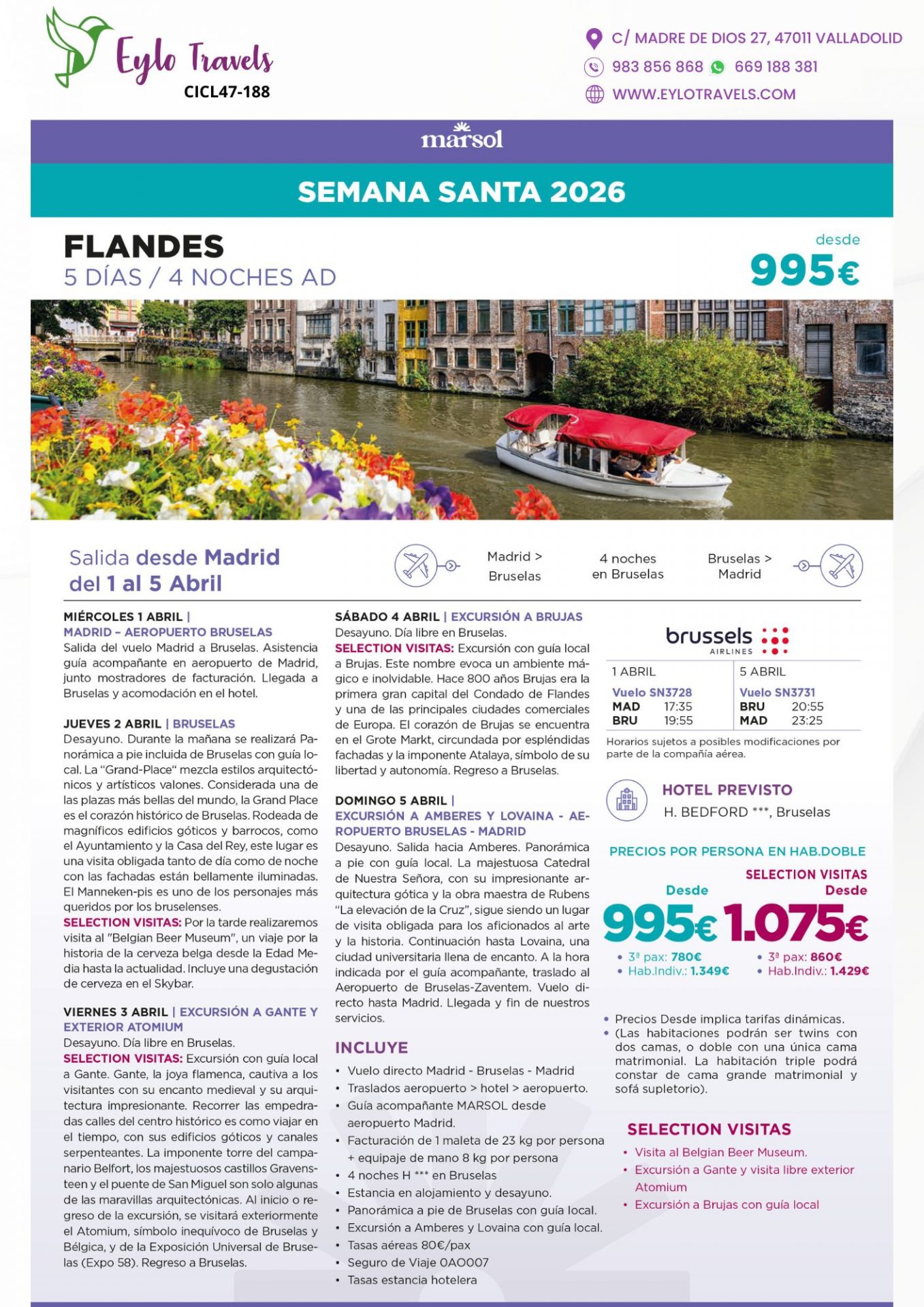 ¡Reserva tu plaza y vive una Semana Santa diferente explorando lo mejor de Flandes!
