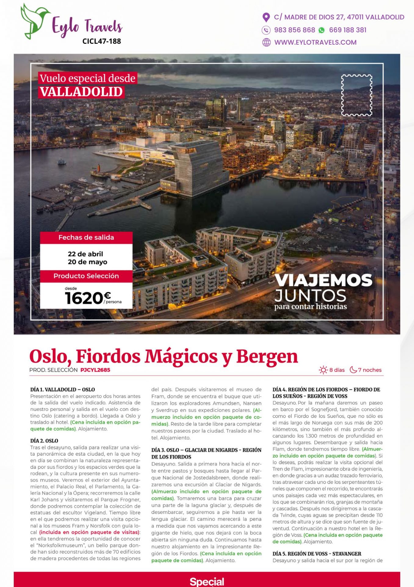 ¿Buscas una escapada inolvidable? Te presentamos un itinerario exclusivo de 8 días y 7 noches diseñado para los amantes de la naturaleza, la fotografía y la cultura escandinava. Olvida las escalas y viaja con la comodidad de un vuelo especial directo.