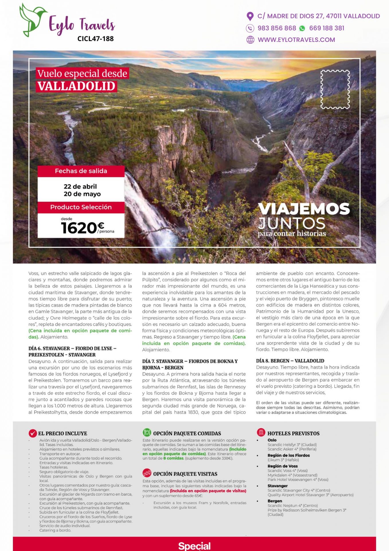 - Precio desde: 1620€ por persona en habitación doble.