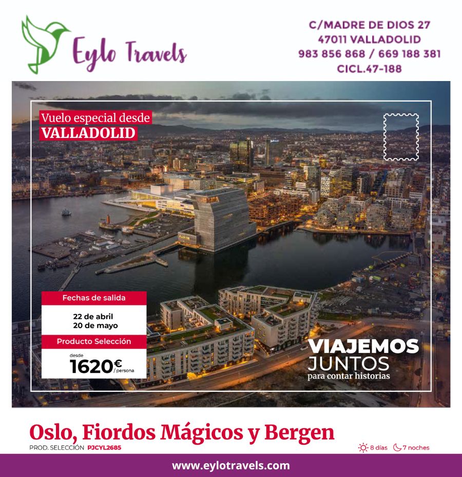 Viaje a Noruega desde Valladolid: Bergen, Fiordos Mágicos y Oslo (8 días).