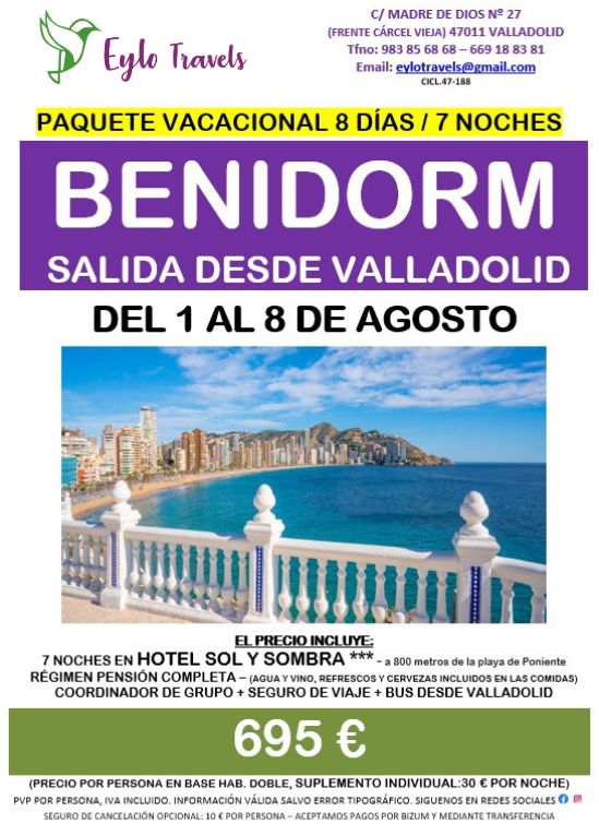 Benidorm desde Valladolid | 8 Días en Pensión Completa en Agosto.